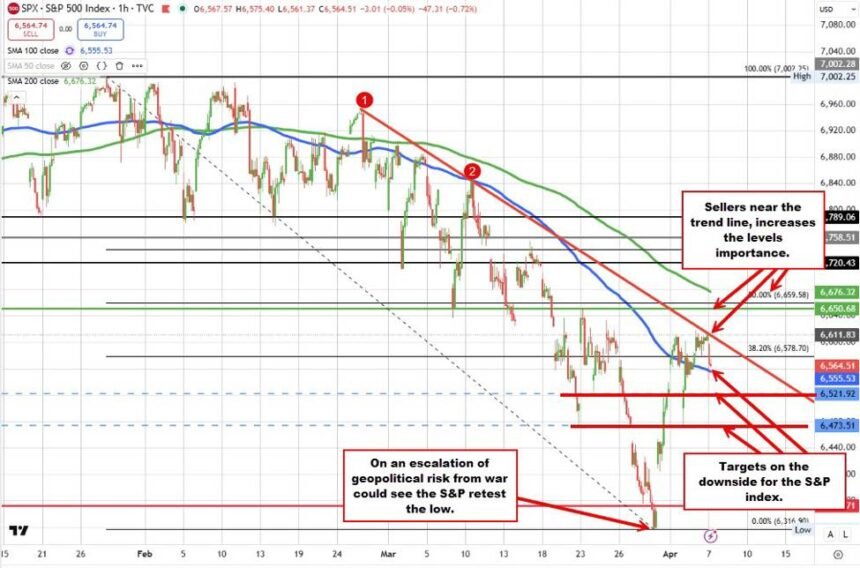 The S&P index pushed higher yesterday, extending further away from its 100-hour moving average (currently at 6555.60) and reclaiming key technical ground in the process. The rally also moved the…