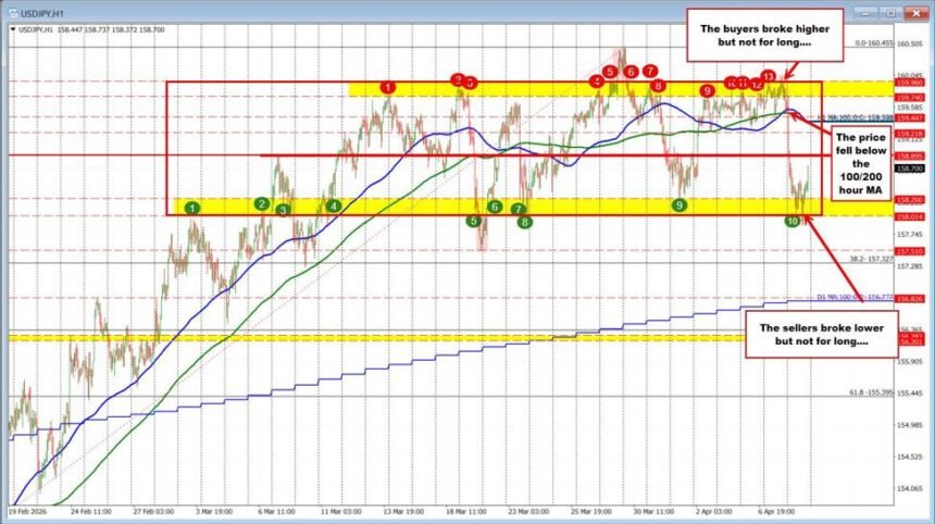 The USDJPY had been holding a bullish bias, trading above either its 100- or 200-hour moving averages (or both) since April 2. That changed over the last two sessions as…