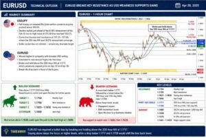 On the corrective move higher, the USDJPY ran into resistance near a confluence zone between 157.25 and 157.50—where the 100-day moving average and the broken 38.2% retracement converge. Sellers leaned against that area, keeping a lid on the recovery. Importantly, the earlier session low has not been retested, leaving that level as a key downside target.